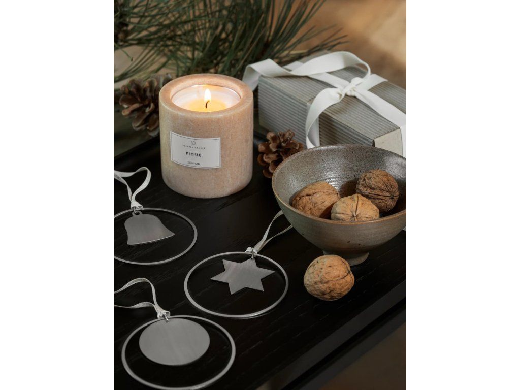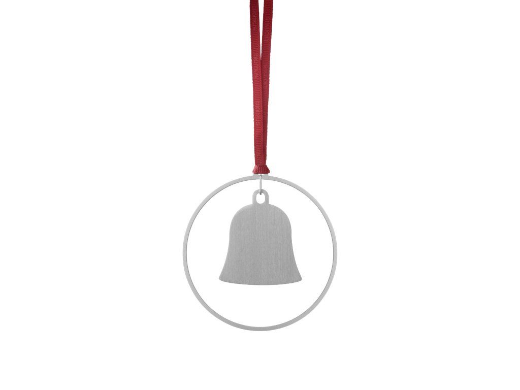 Ornamentele metalice cu motiv de stea, clopoțel și bilă conțin în pachet și o panglică în culorile Satellite și Port/roșu.