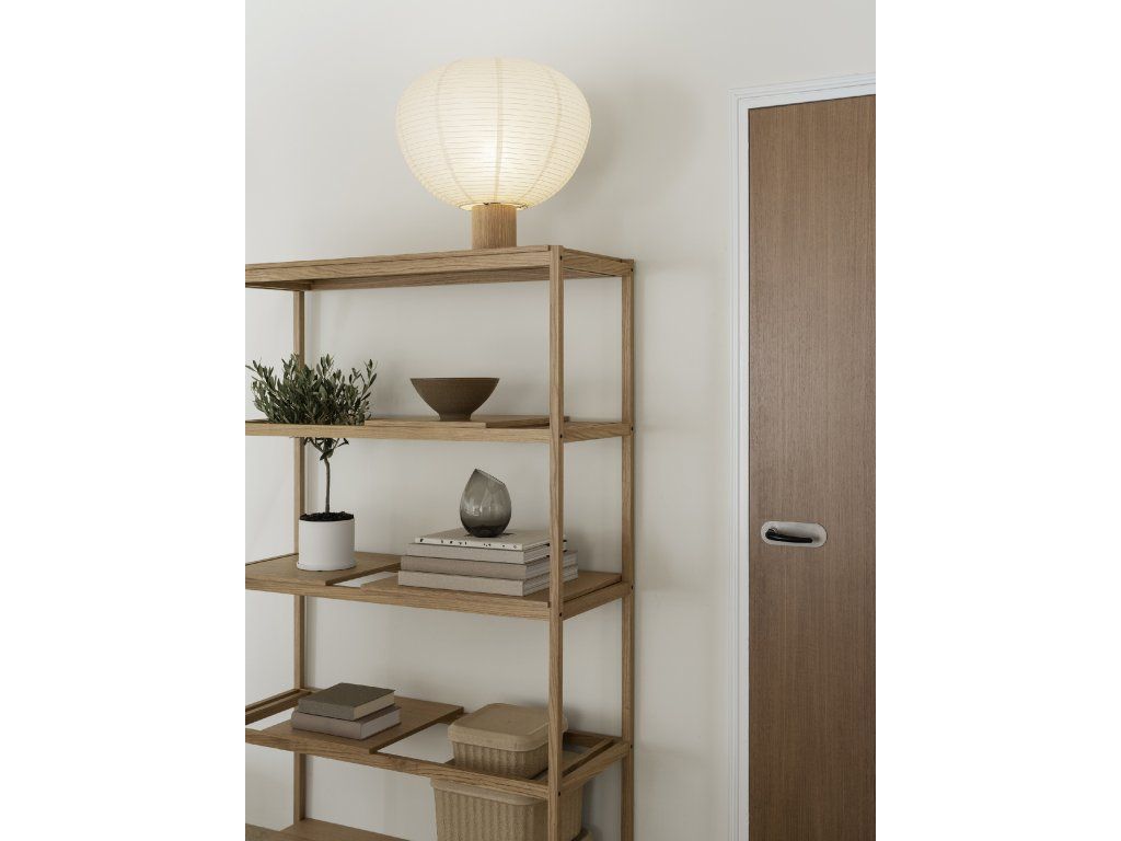 Abajurul delicat din hârtie fină de orez emană o lumină difuză plăcută, care creează o atmosferă liniștitoare și transformă orice încăpere într-un spațiu confortabil. Baza din lemn de înaltă calitate conferă luminii o căldură naturală și oferă un contrast stabil și elegant cu designul aerisit al abajurului.