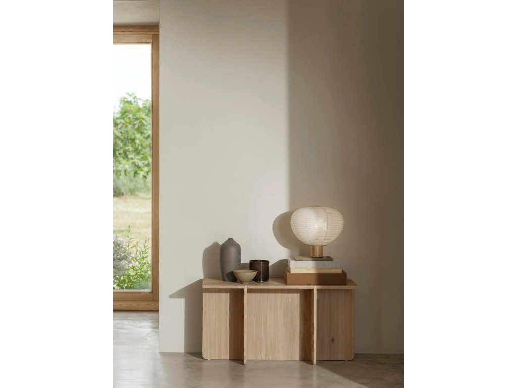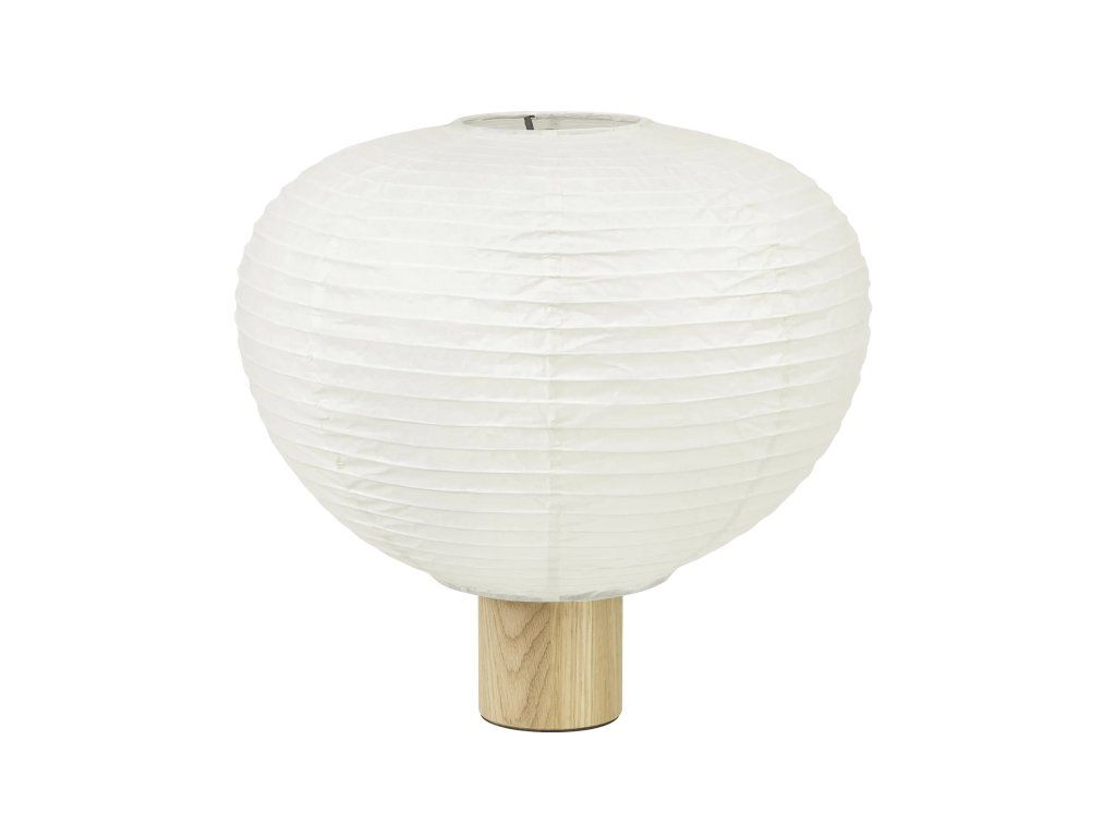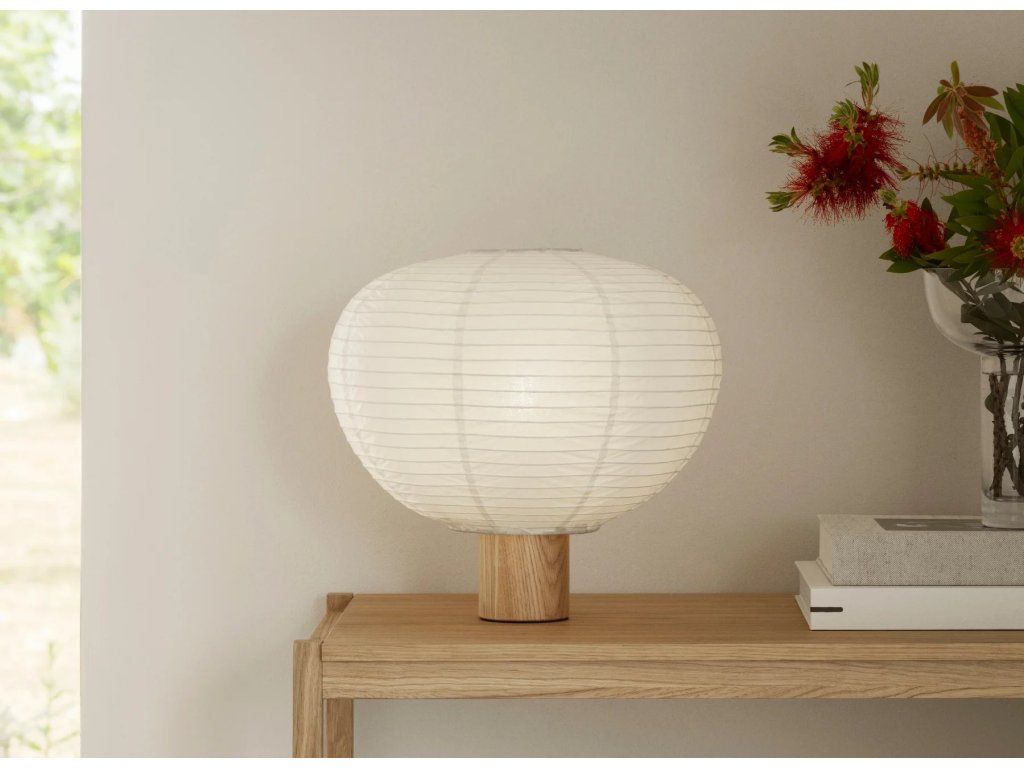 Abajurul delicat din hârtie fină de orez emană o lumină difuză plăcută, care creează o atmosferă liniștitoare și transformă orice încăpere într-un spațiu confortabil. Baza din lemn de înaltă calitate conferă luminii o căldură naturală și oferă un contrast stabil și elegant cu designul aerisit al abajurului.