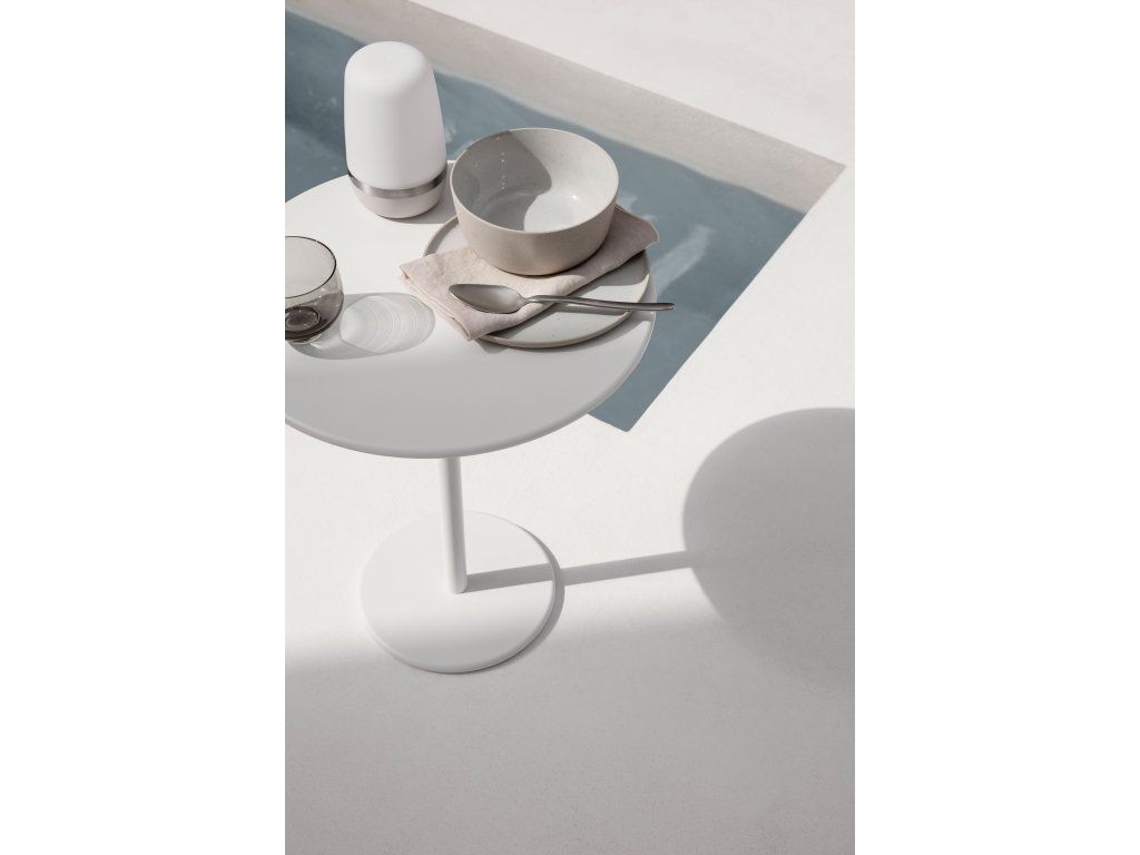 Măsuțele de exterior STAY au fost proiectate pentru a se potrivi cu colecția de mobilier cu același nume: estetica precisă și fără compromisuri creează un contrast cu șezlongurile moi, pufurile și pernele. Măsuțele sunt fabricate din aluminiu vopsit cu pulbere, astfel încât nu ruginesc, iar datorită marginilor ușor rotunjite și greutății lor, sunt foarte ușor de transportat, păstrându-și totuși stabilitatea chiar și pe vreme vântoasă.