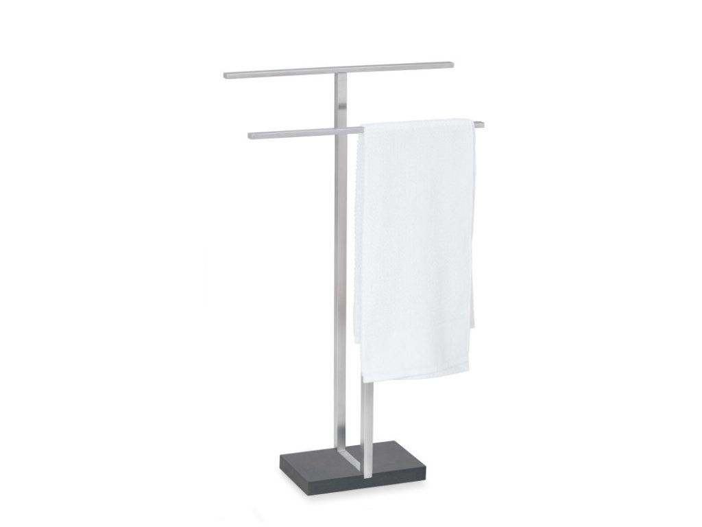 Suportul elegant pentru prosoape MENOTO cu un design discret completează perfect băile moderne. Baza din polystone negru contrastează cu oțelul inoxidabil mat și conferă suportului un aspect luxos. Puteți amplasa suportul acolo unde aveți nevoie, astfel încât prosoapele să fie mereu uscate și la îndemână.