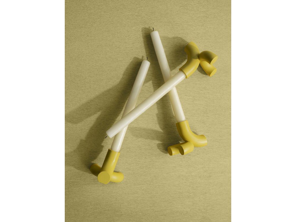 Set de 2 sfeșnice DOODLE galben / auriu