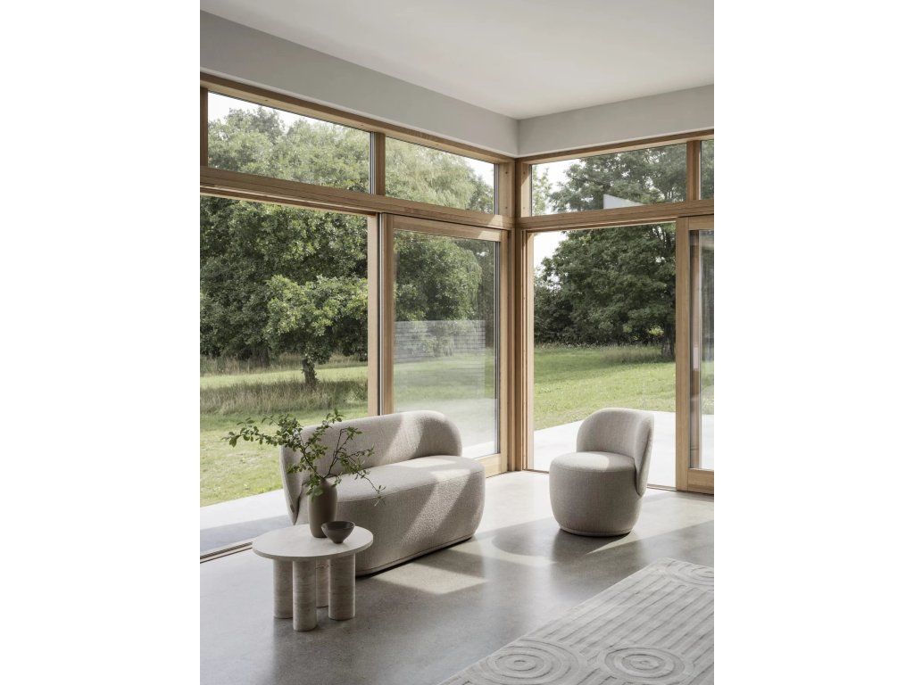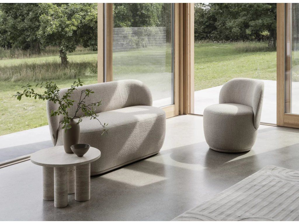 VOLOS colecție de măsuțe minimaliste, realizate din travertin – calcar poros, proiectată de designerul Sebastian Herkner. Travertinul se caracterizează prin găuri, pori și diferențe de culoare, ceea ce face ca această piatră să fie unică.